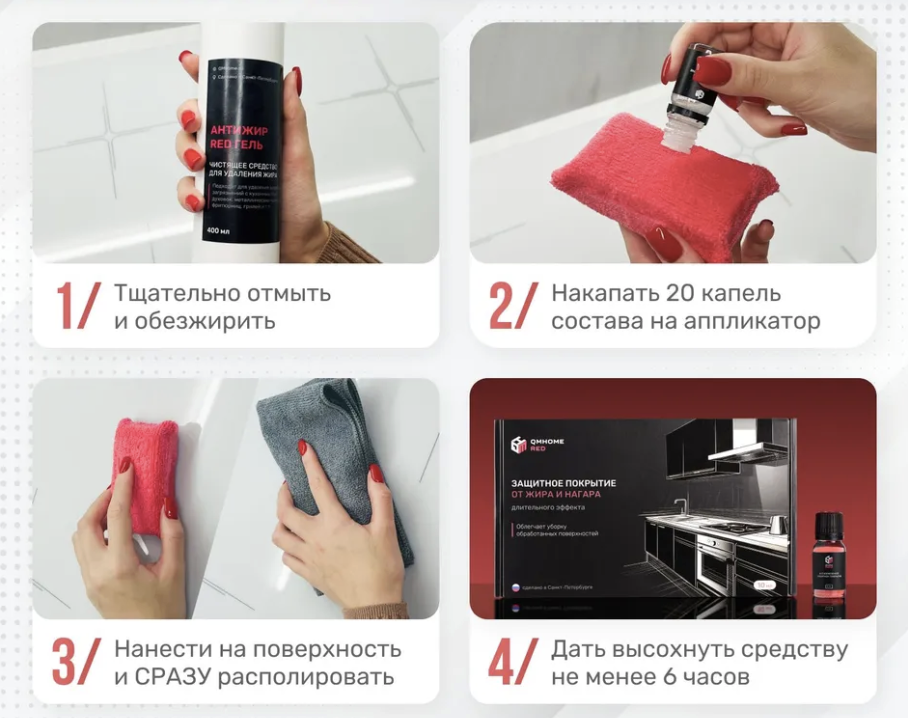 2–3 раза 10 мл состава хватит, чтобы обновить покрытие на плите 2–3 раза.